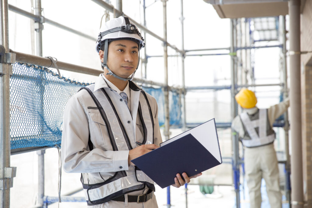 現場の安全パトロールや品質確認などの現場での業務の他、施工計画書や竣工図書作成などのデスクワーク、施工業者の工程調整や施主との打ち合わせといった社外対応業務など、業務内容は多岐にわたる。