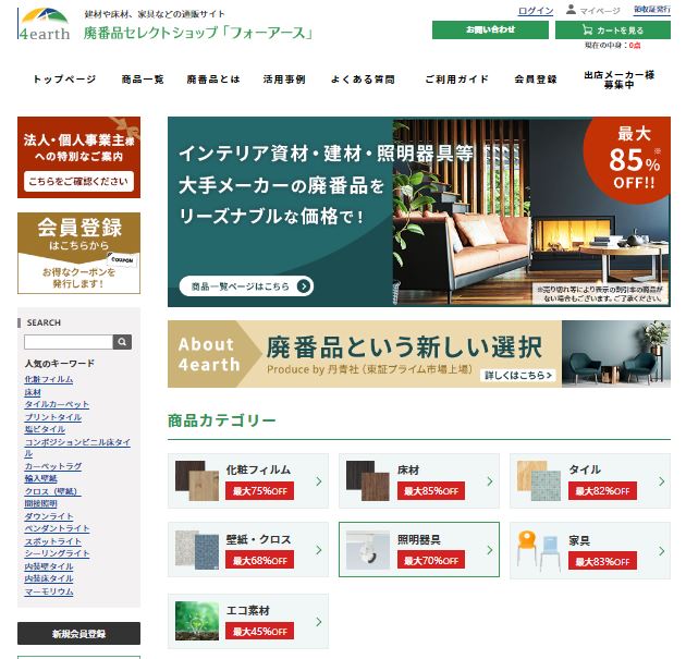 最大85%オフの床材や、最大83%オフの家具も(4earth公式サイトより)