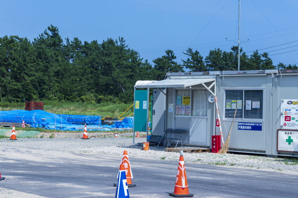 工事用の事務所や詰所、資材置き場は建築確認申請を出しているのでしょうか。この場合、工事用の仮設建築物として工事期間中は建築基準法の確認申請を要しない建築物(建築基準法第85条第2項)となっています。建築工事が終われば、撤去が必要となり、そのまま使い続けると違法建築物となります。