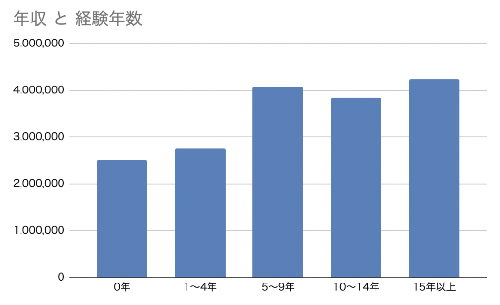 厚生労働省の令和2年賃金構造基本統計調査を参考にすると、経験年数が15年以上の場合だと平均年収が約425万円となります。この中には、すでに第一線を退いた方も含まれていると推測できるため、現役として働いている方の年収はさらに高いと考えることができます。
