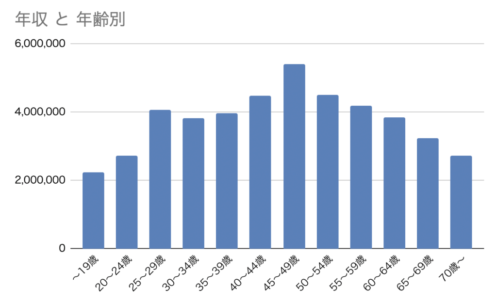仕事を覚え始め、一人前になってくる20代後半から30代後半までは年収400万円前後となります。そして業界経験を積み、熟練度が高まってくる40代になると年収はさらに上がり、45〜49歳の約541万円が平均年収のピークとなります。