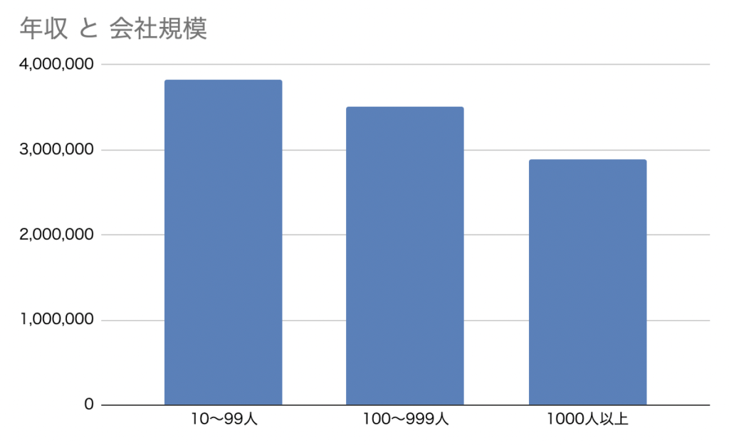 最後に、会社規模別の平均年収(大工)を紹介をします。