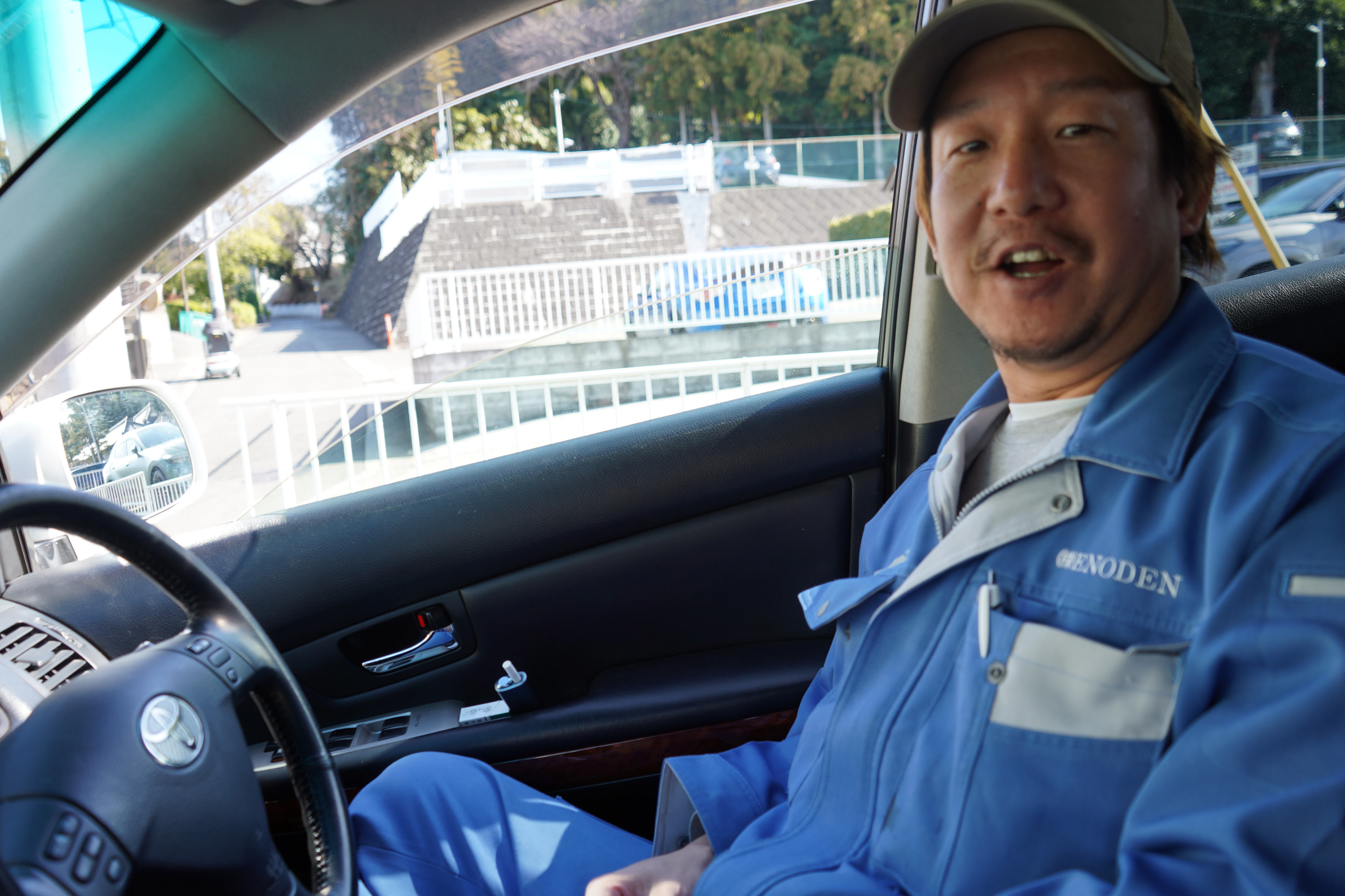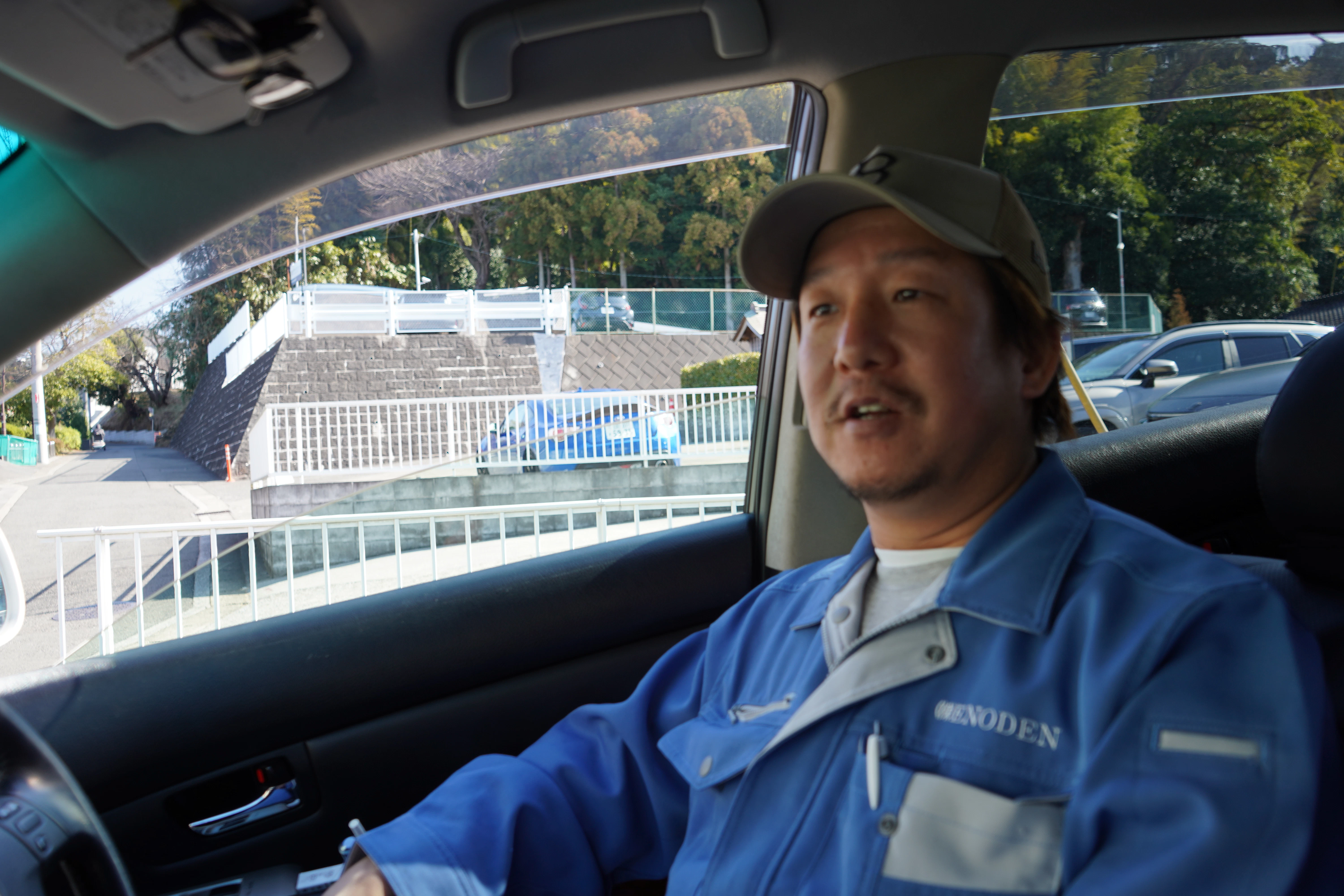 休憩時間のため、竹内さんの車内でインタビューを実施