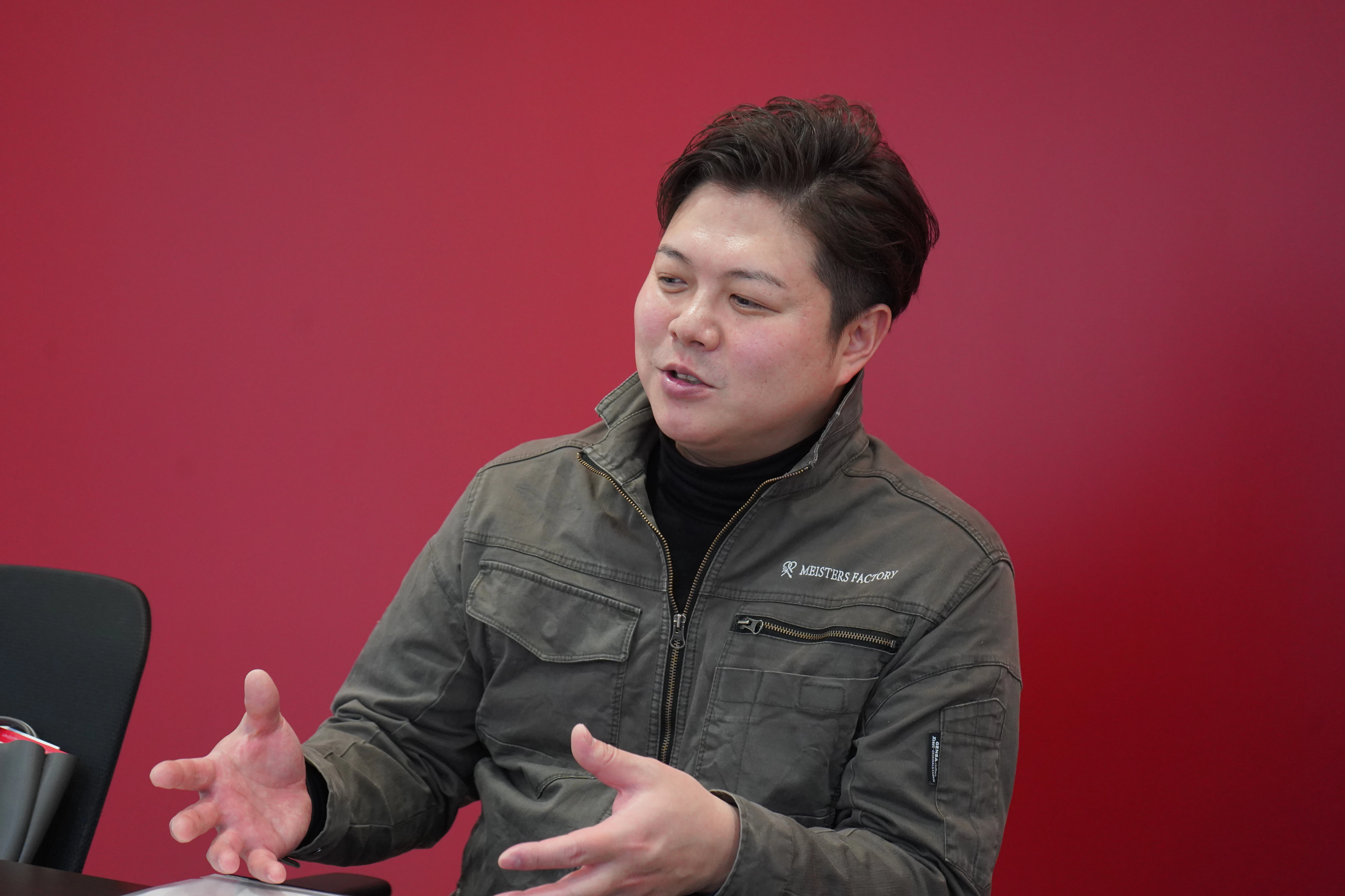 株式会社マイスターズファクトリー 代表取締役。内装職人として経験をつむなか、多能工のもつ可能性を見出す。その後、株式会社クレアコーポレイション社長のブログに共感し、入社を決意。株式会社マイスターズファクトリーの代表取締役に就任する。