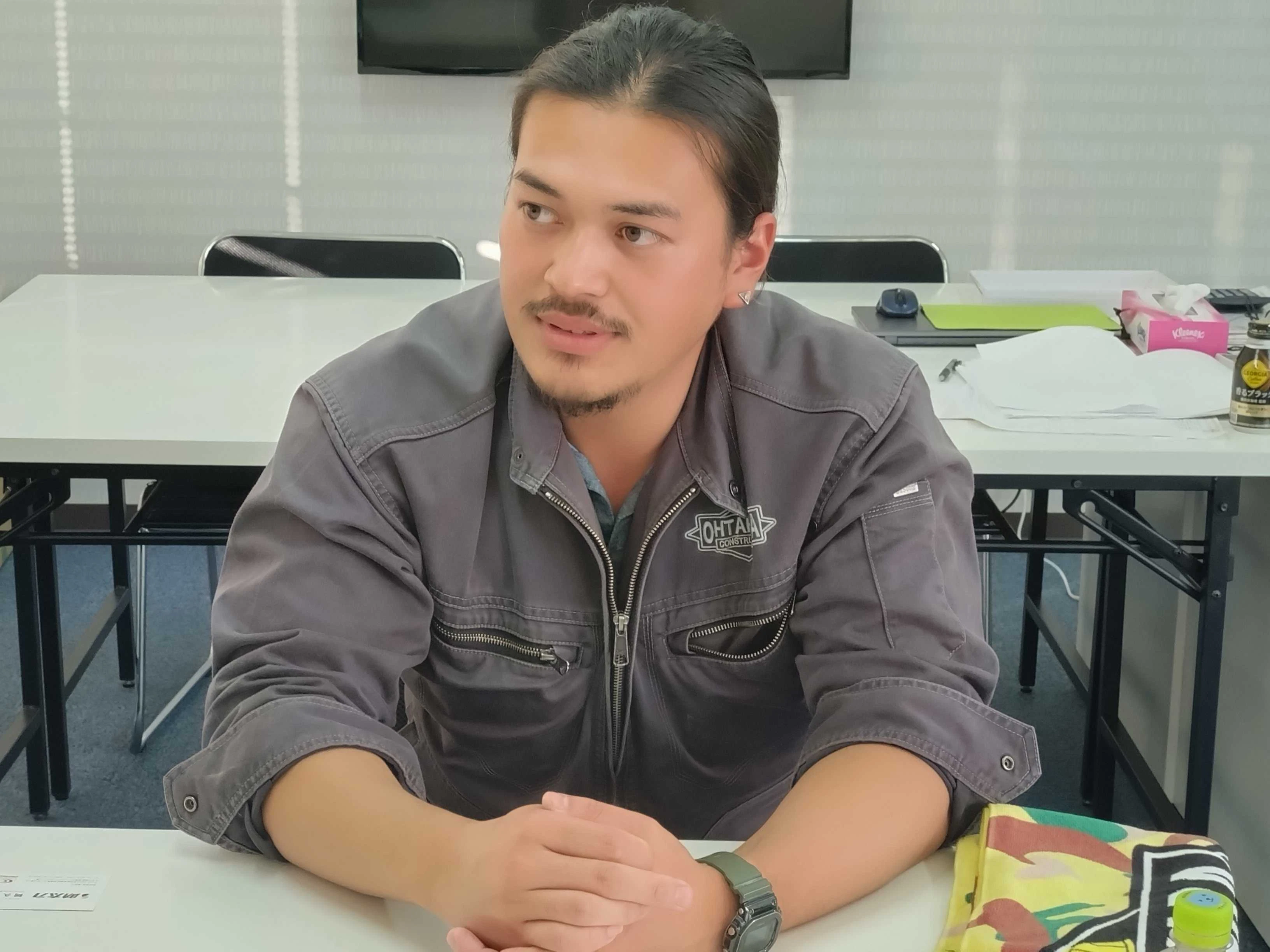 宮城県石巻市出身。東日本大震災で被災したことがきっかけで千葉県に移住。高校卒業後から、中古車販売、自衛官などさまざまな職種を経験した後、大田原工業へ転職。