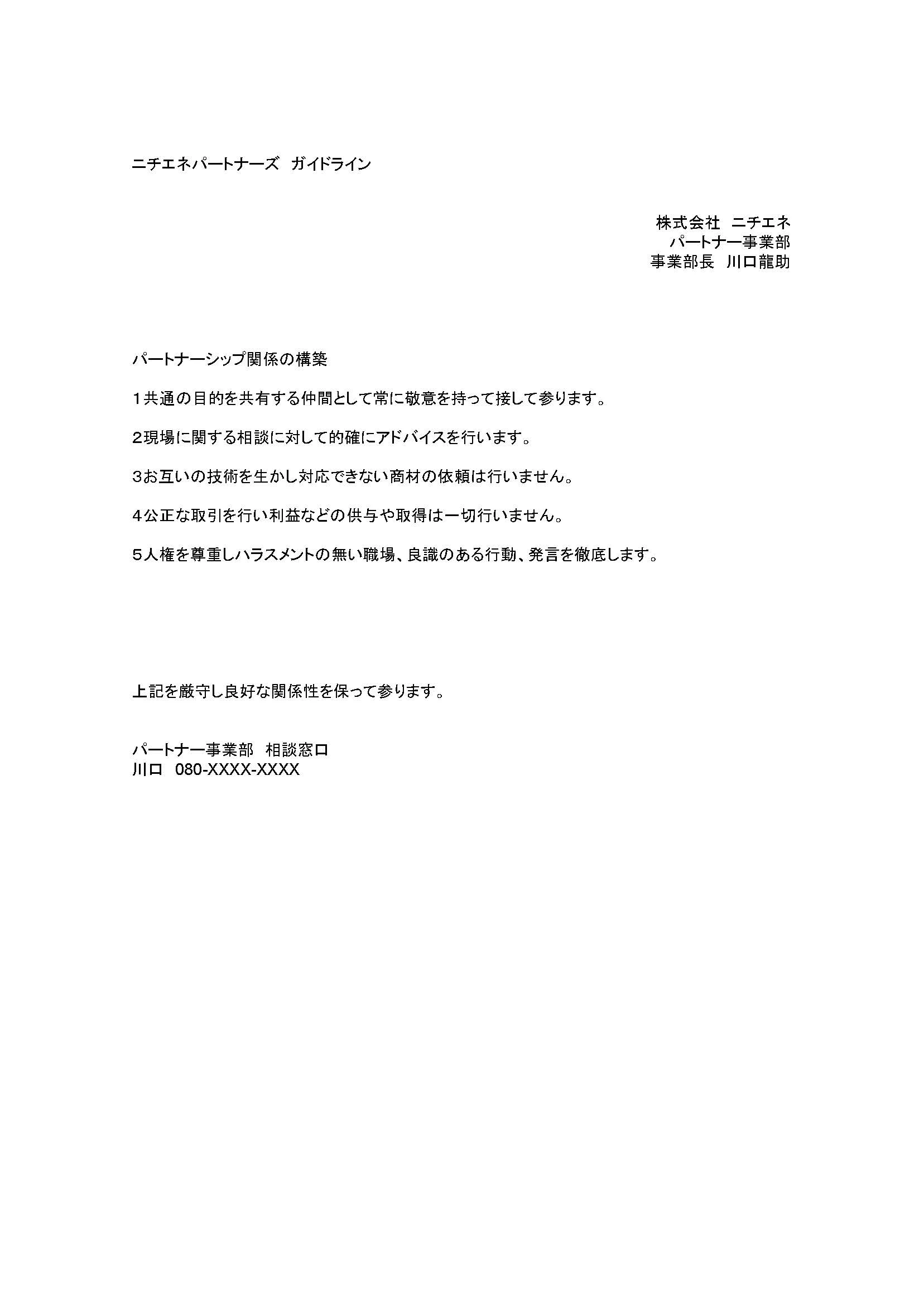 協力会社様向けガイドライン草案(ニチエネ社より提供)