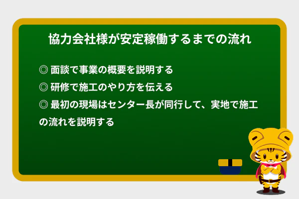── 協力会社様が安定稼働するまでの流れについて詳しくお伺いできますか。