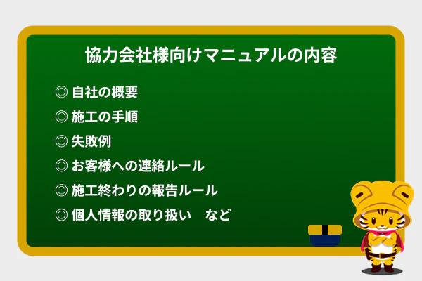 そこで、会社として協力会社様への対応方針を明文化して、マニュアルに明記するようにしたいと思っています。