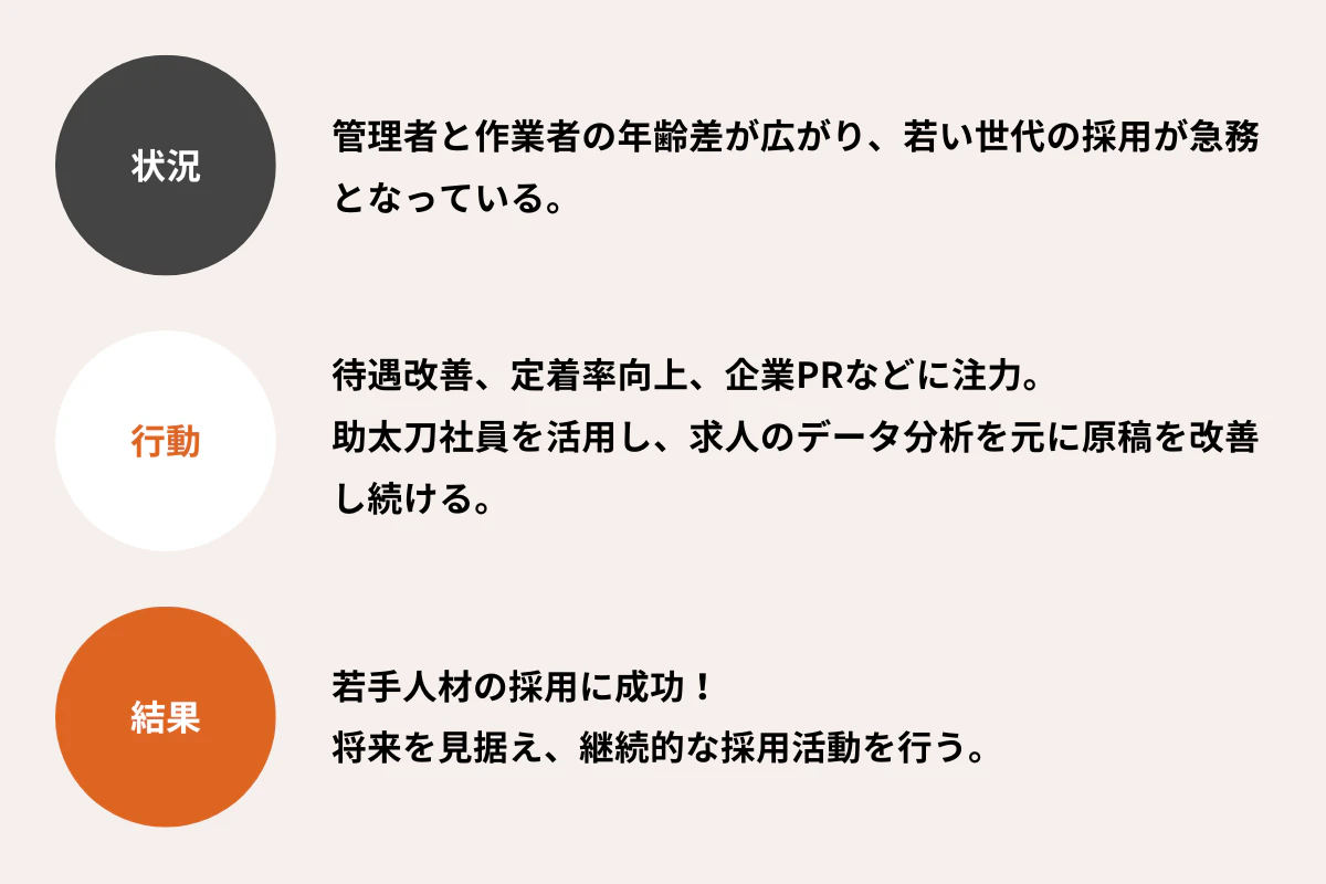 駒澤:求める人物像を明確にしたことと、その人物が魅力を感じてくれるような求人を助太刀のコンサルタントと一緒に作っていったことですね。