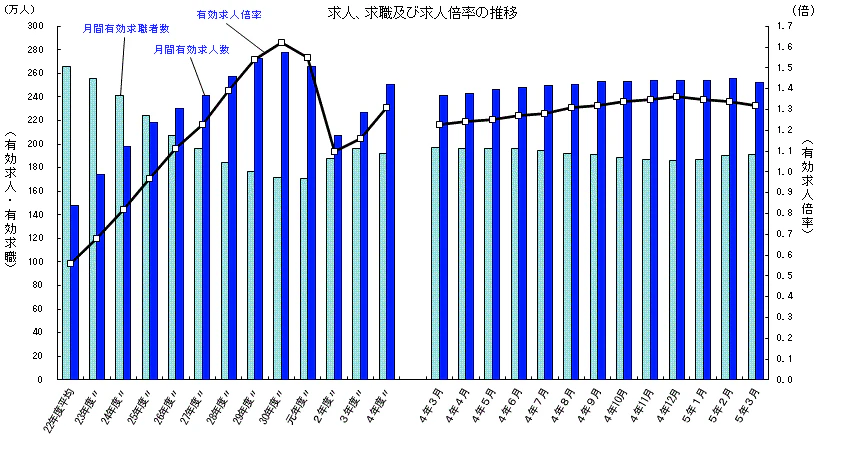 (出所:「一般職業紹介状況(令和5年3月分及び令和4年度分)について」厚生労働省)