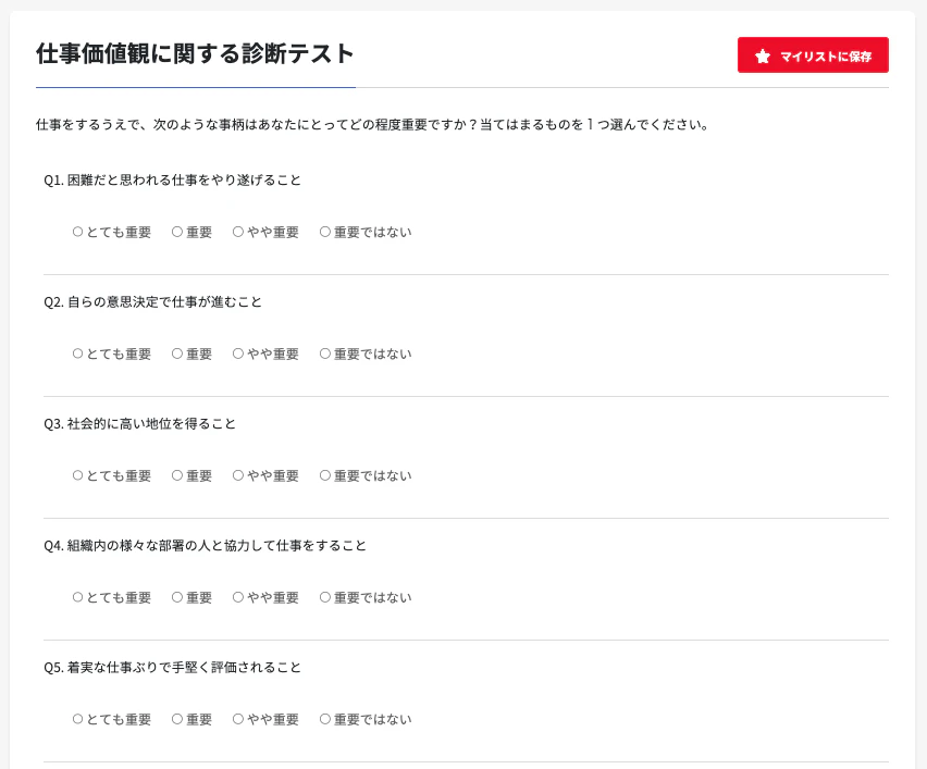 そこで、客観的に自分を知る一例として、厚生労働省が提供している「価値観検査」を使ってみることをおすすめします。50の質問に答えることで、あなたの価値観を客観的に評価してくれるというものです(図2)。