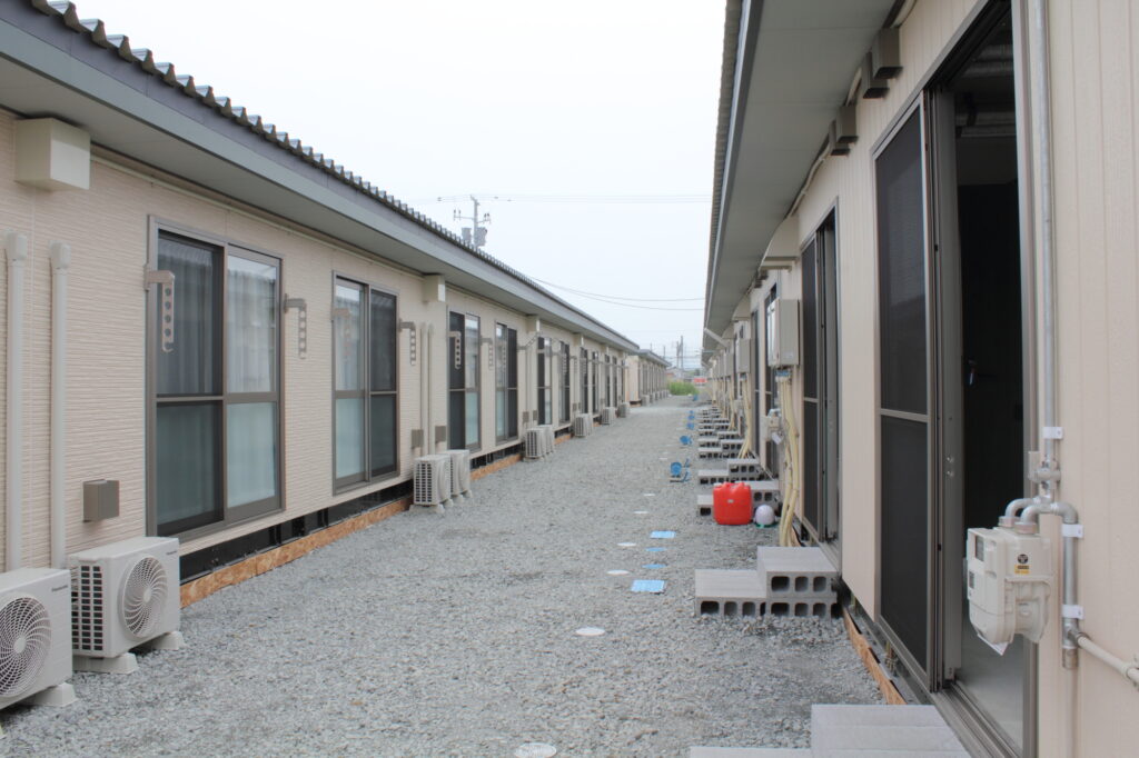 住人の方もそれを日常として受け入れてはいましたが、プレハブの仮設住宅住まいは不安が強かったと思います。アパートに住む方もいましたが、そこも地震でダメージを受けており、余震が起きたら壊れるんじゃないかと思いながら住んでいるというケースもありました。
