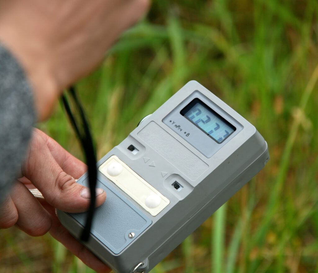 鳴り響く放射線量計のアラーム