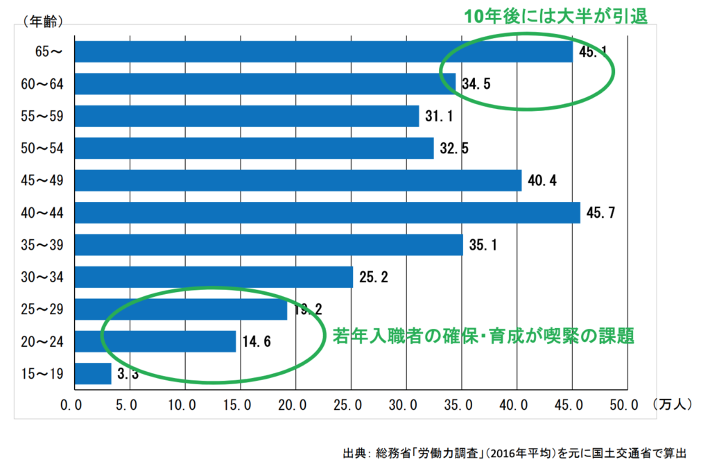高齢化の進行により、近い将来には大半が引退してしまうということが予想され、若い人材の確保や育成が課題となっています。*8