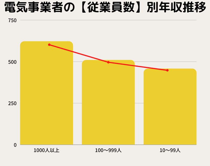 表やグラフをみてわかる通り、平均年収が500万円を越えているのは1000人以上の企業です。