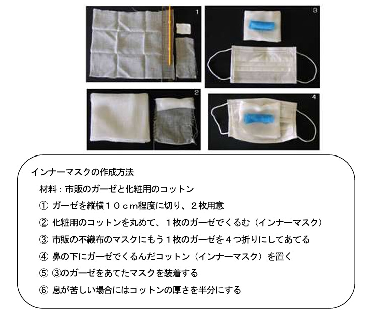 出所)アレルギーポータル「アレルギーの本棚>患者さん・一般の方向け>花粉症環境保健マニュアル2022」P.25図3-6インナーマスクの作成方法
