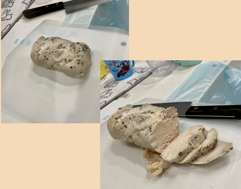 鍋に沸騰したお湯を入れ、火を止めて30分ほど余熱でお湯につけておくと火が通ります。