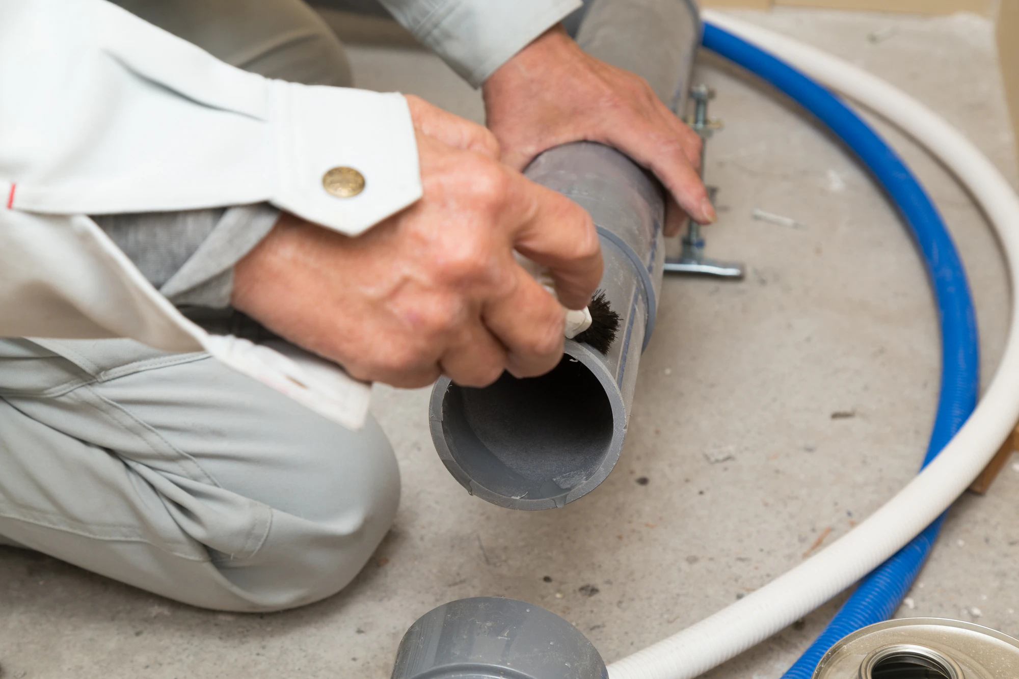 戸建て住宅を例に出すと、床下に配管を固定し、水回りの設備を繋いでいきます。パイプはさまざまな種類や形状のものがあり、用途にあわせて使い分けたり、長さの調整が必要なものはその場で切って長さの調整をします。また、パイプを繋ぐ際には、継手と呼ばれる部品を使ってつなぎあわせます。