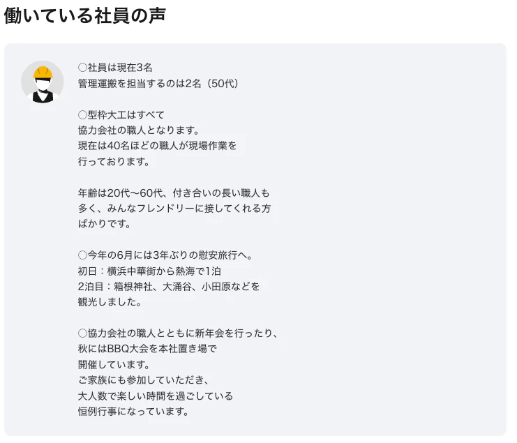 また、助太刀社員であれば、求人企業の社員にインタビューをして「働いている社員の声」として求人に掲載しています。