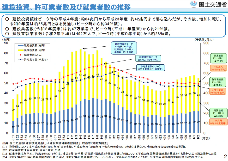 (出典:国土交通省「最近の建設業を巡る状況について【報告】」より)