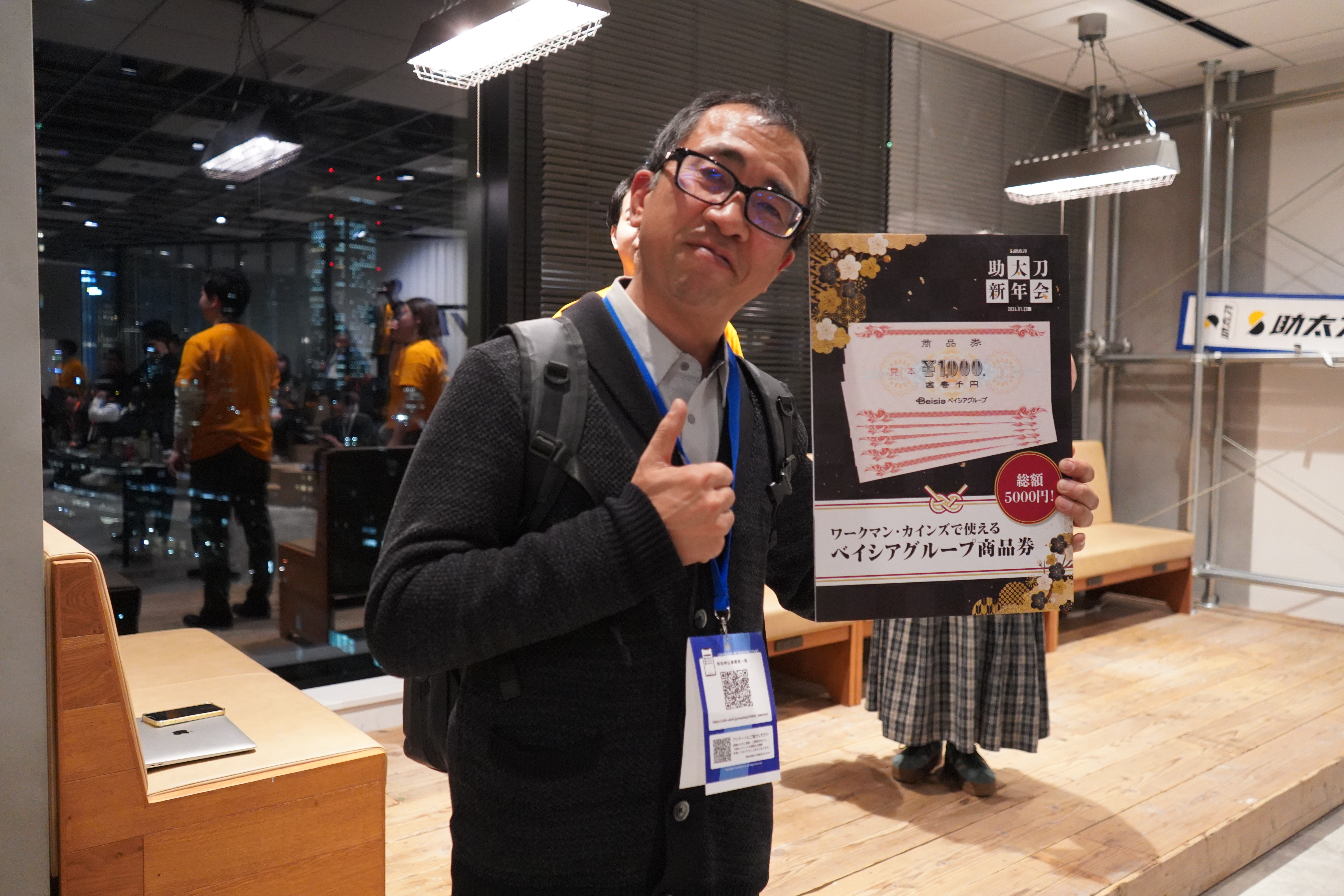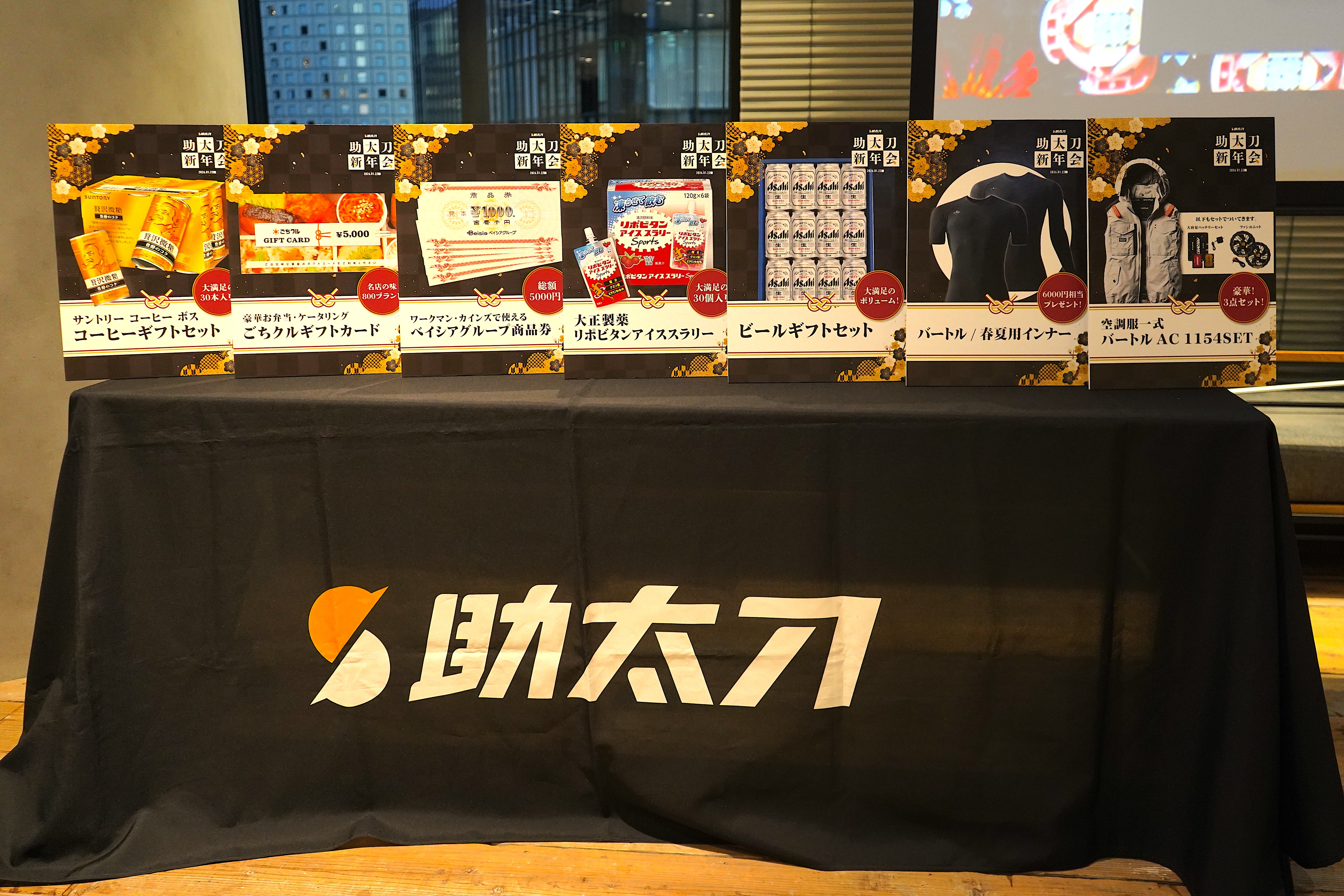 飲食の提供に加え、ノベルティや景品パネルなどの演出も取り入れ、会場全体が「新年会らしい」華やかさと一体感に包まれる時間となりました。
