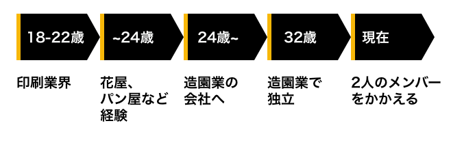 最初に働いていた印刷業界を退職したのち、昔から植物に触れることが好きだったのもあり、お花屋さんで働いていました。そこは、植木屋さんも買い物に来るような場所だったので、彼らの存在を知り、植物に触れる仕事をもう少し本格的にやってみたいなと思い立ち、募集を出している会社に応募してみました。昔からもの作りは好きでした。