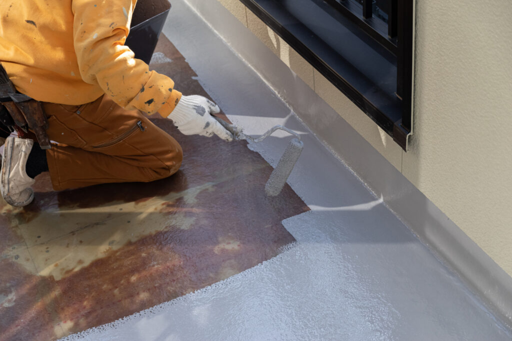 そんな時はバーナーを使って水を乾かします。品質も工程も守って防水を仕上げます。
