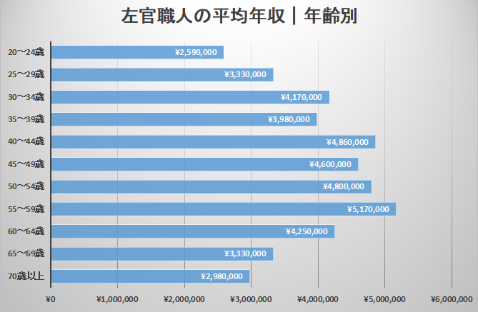 左官職人の年齢別平均年収・月収・ボーナス