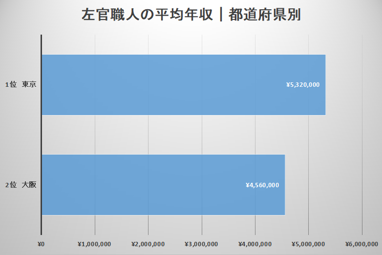 左官職人の地域・都道府県別平均年収
