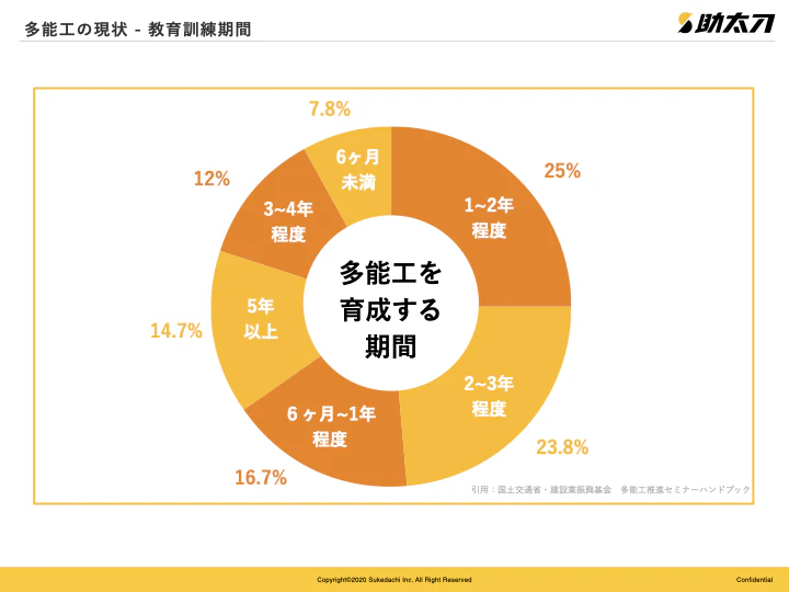 多能工化するための期間が長いという意見も多くありましたが、実際にどれくらい育成に時間がかかるのか確認していきます。