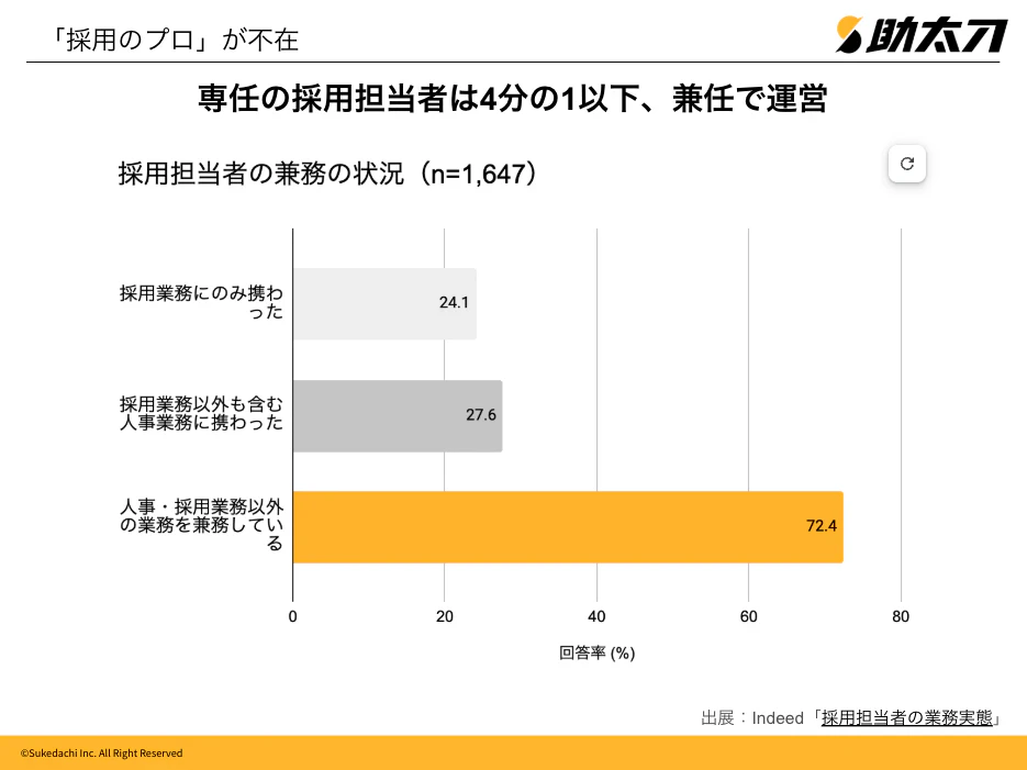多くの中小企業が、採用活動に専任の担当者を置けていない実態があります。