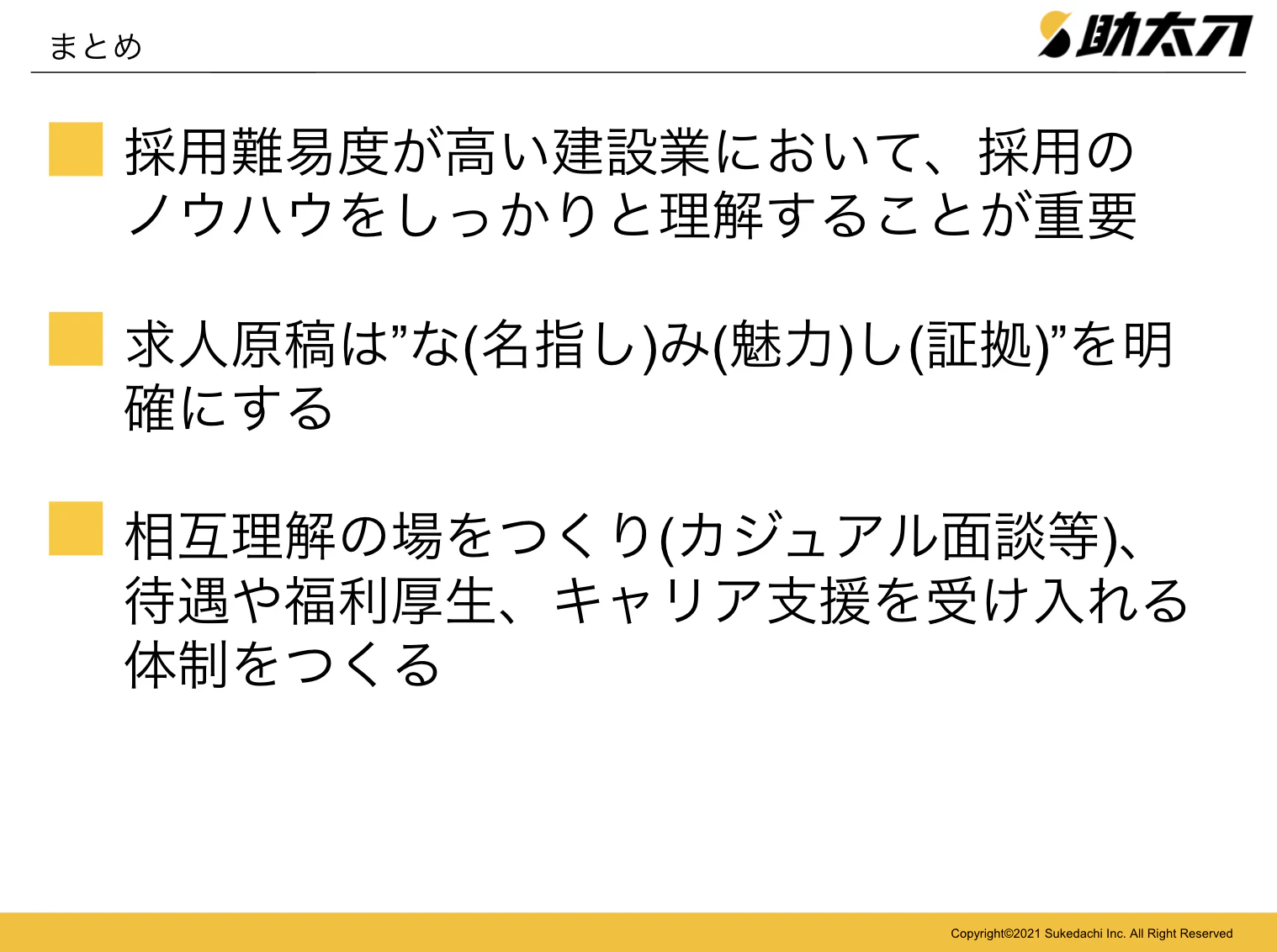 1.ノウハウの理解が重要:採用難易度が極めて高い建設業において、感覚的な採用活動は通用しません。まずは採用の基本ノウハウを理解することが重要です。