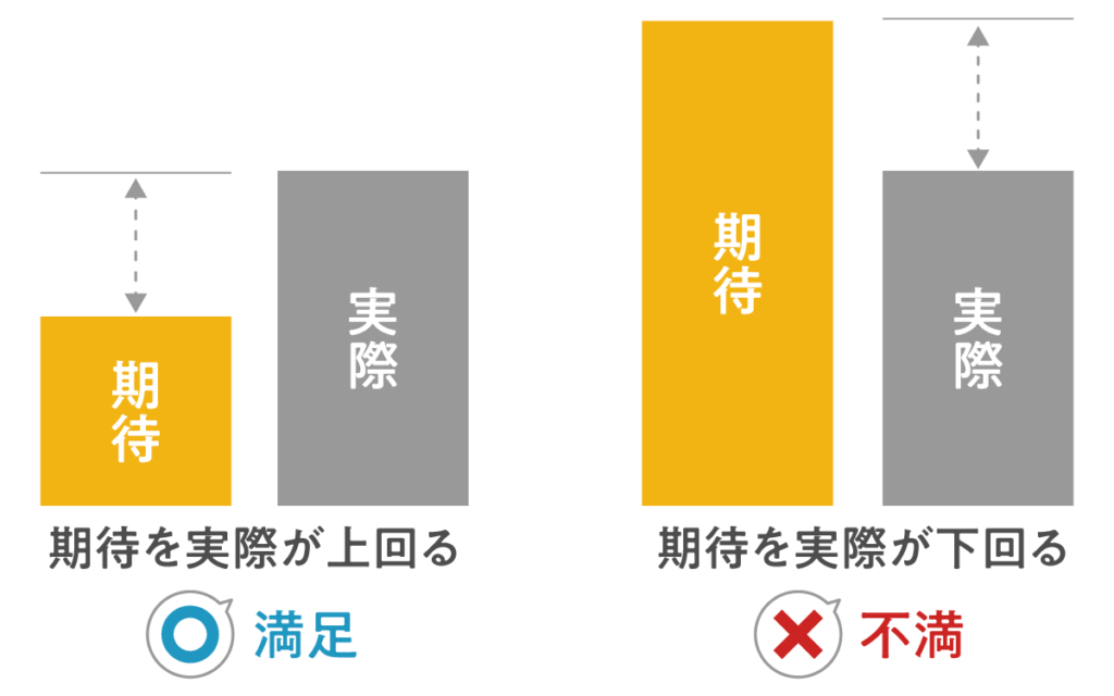 実際のクオリティが同じであっても、事前に抱いていた期待が満たされれば満足しますし、期待が満たされなければ不満を感じます。