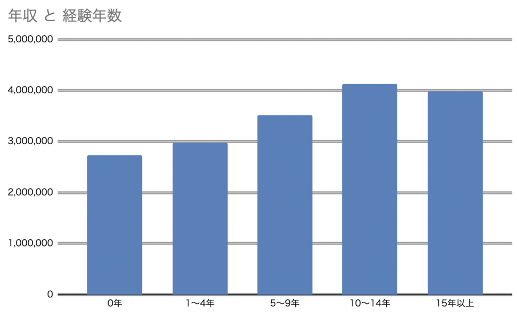 次に、経験年数別の平均年収を見てみましょう。