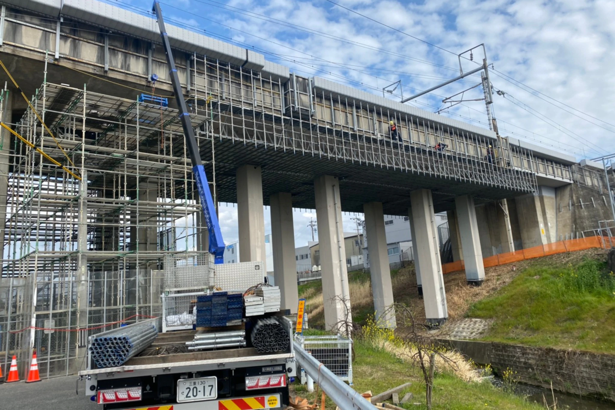 高速道路・川・橋での作業が多く、伊勢大橋工事足場、名古屋高速の吊足場、新幹線吊足場など、様々な施工実績があります。