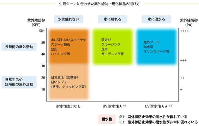 屋外で長時間作業する場合は、「SPF30」以上、「PA+++」以上を選ぶようにしましょう(下図参照)。