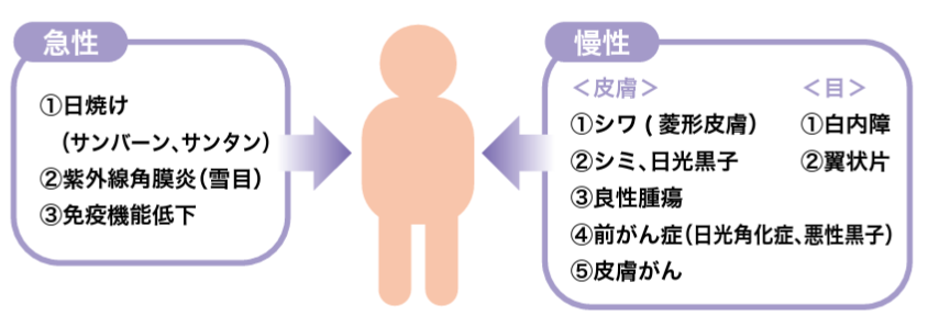 出所)環境省「保健・化学物質対策>環境保健に関する調査・研究>紫外線環境保健マニュアル2008>第2章 紫外線による健康影響」