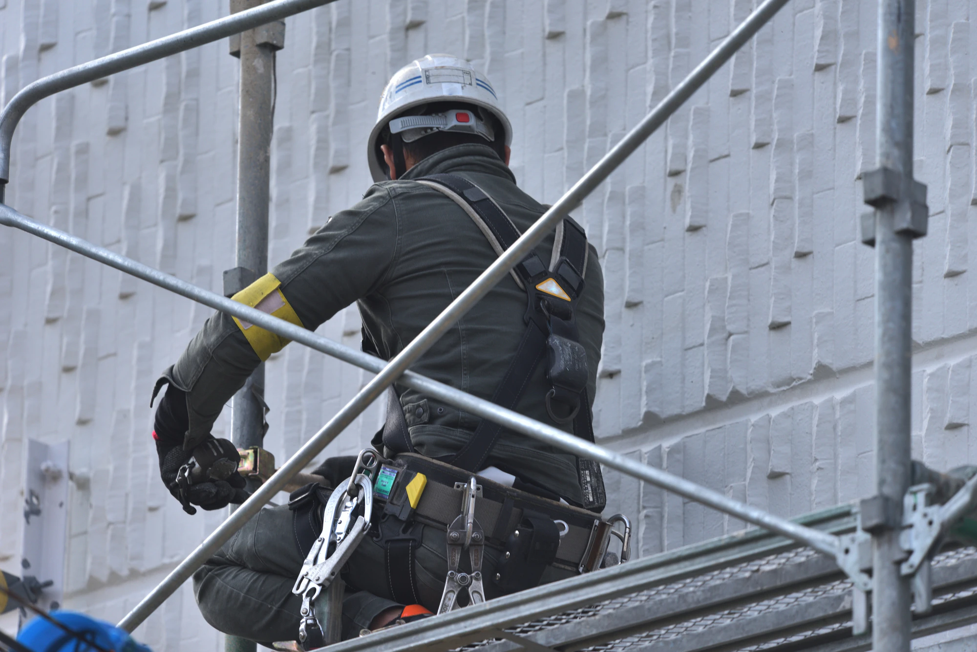 安全帯は、落下防止のために必要な道具です。鳶職では、高所での作業が多く、安全帯を着用することが義務付けられています。安全帯には、ベルトタイプやフルハーネス型などがありますが、鳶職では、フルハーネス型を使用することが一般的です。安全帯は、高所で働く作業員が転落しないようにするための重要な道具です。建設現場では、高所作業を行う職人に安全帯の着用が必須とされています。
