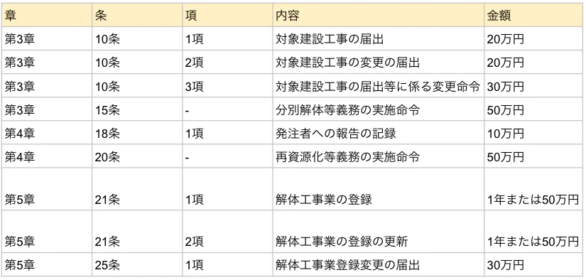 具体的には、都道府県知事への事前届出や請負契約書面への必要事項の記載などが義務とされています。特に分別解体や再資源化の義務が重視されており、これらを怠ると罰金や懲役になる場合もあります。