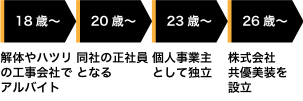 弱冠23歳で個人事業主として独立され、26歳で株式会社共優美装を設立。