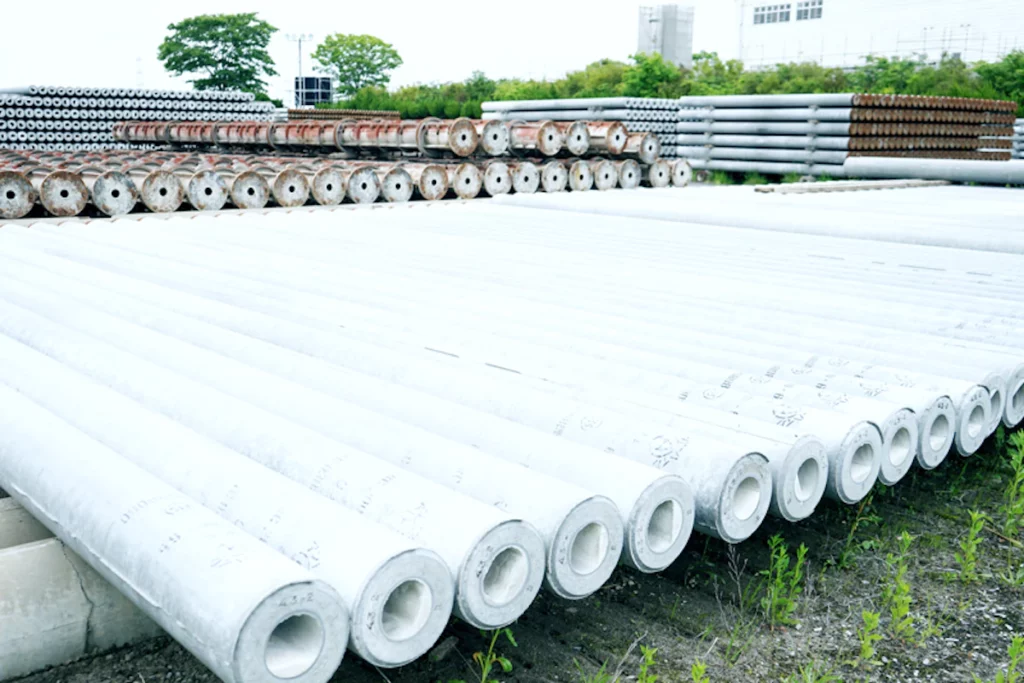 コンクリートパイルは、工場で生産されたコンクリート製の杭(くい)であり、建造物の土台となる杭基礎工事で使われます。