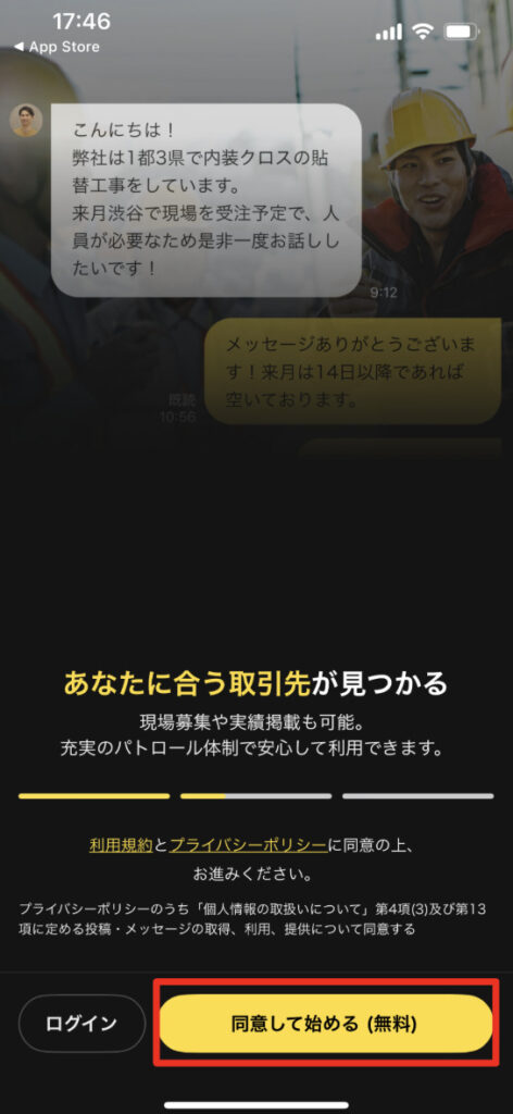 そこで今回は、職人さんに実際にアプリを使ってもらいながら、元請とつながる為に必要な設定について解説していきたいと思います。
