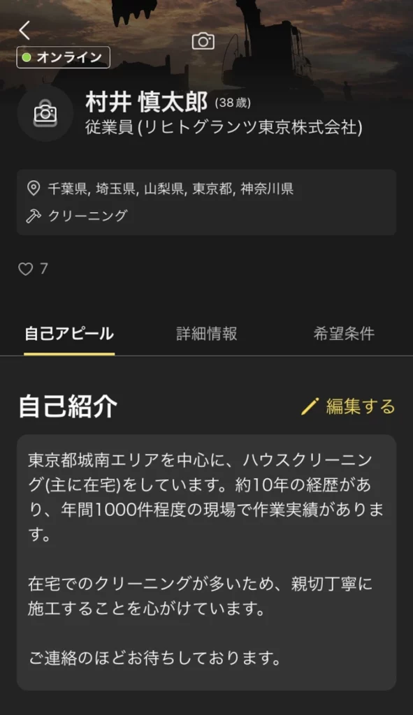 ここまでで必要な作業は終わりです。後は元請けからの返信を待つだけ。もしくはプロフィールを見た元請けからメッセージが来るかも!最近は最終ログイン日で検索する元請けも増えていますので、ログインはこまめにしておくことをお勧めします。