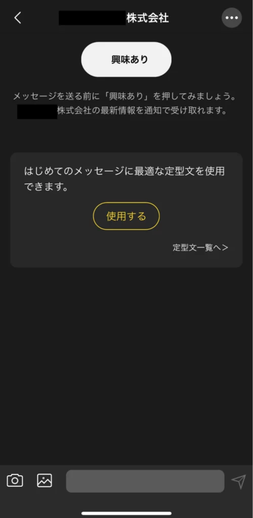 「この元請けとつながりたい」と思った会社が見つかったら、メッセージを送信してみましょう。その時に「興味あり」ボタンを押しておくと、相手からメッセージがきやすくなります。メッセージを送る際は定型文もありますので、定型文を元にご自身のメッセージを作っていくと効率的です。
