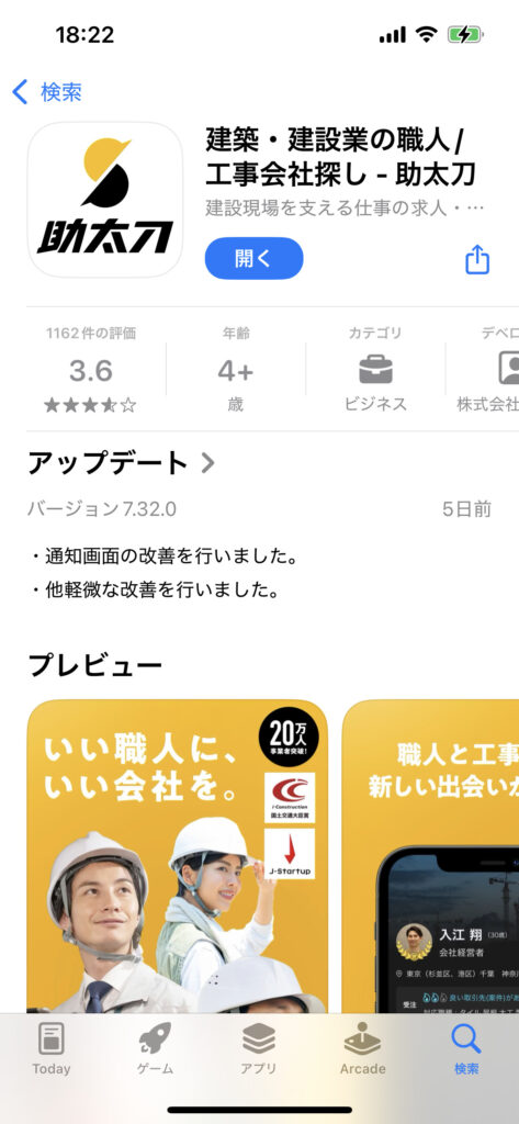 職人さんと工事会社をつなげるマッチングアプリ「助太刀」。登録事業者数は18万人を越え(2022年8月23日時点)、多くの方に使われています。
