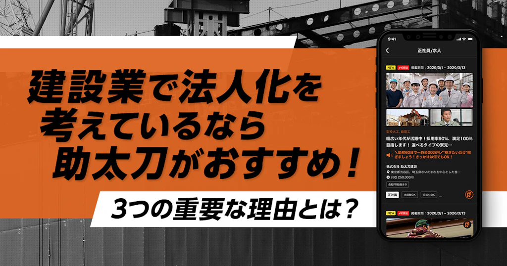 建設業で法人化を考えているなら助太刀がおすすめ!3つの重要な理由とは?