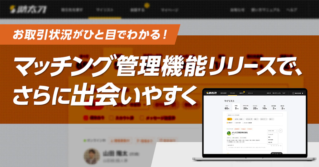 お取引状況がひと目でわかる!マッチング管理機能リリースで、さらに出会いやすく