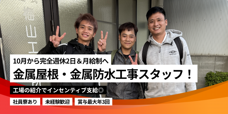 【創業100年周年に向け施工スタッフ募集】金属屋根・金属防水工事◆即戦力の方優遇!有名現場の実績多数